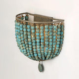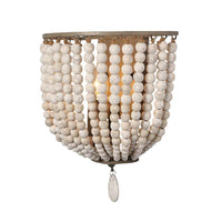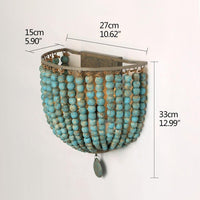 Diese Holzwandleuchte mit ihren natürlichen Holzperlen, wobei Lehmgrau oder Karibikblau die dominierende Farbe sind, strahlt eine sanfte Ausstrahlung und ein zartes Aussehen aus. Es ist nicht zu sperrig und wird Ihren Raum nicht überladen, weshalb es sich sofort in die Mitte Ihres Schlafzimmers einfügt.