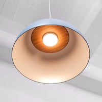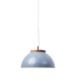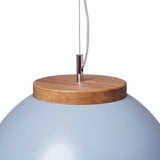 Solid oak and aluminum are both a noble and natural material , which is what makes this pendant light unique and modern! Light wood with detailed surface highlights the blue color of the aluminum dome . To draw the eye only to these two materials, the power cable discreetly follows the attachment cable up to the ceiling.