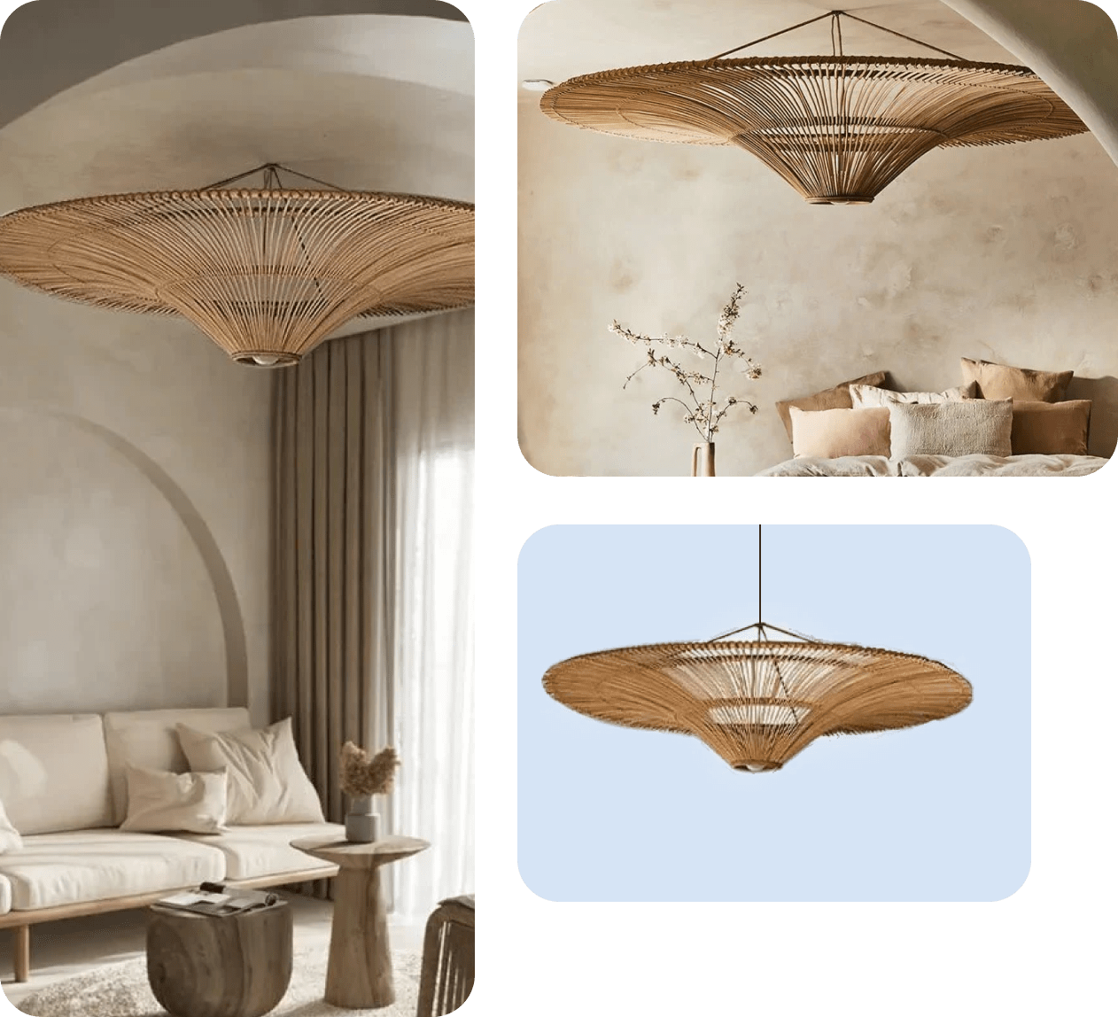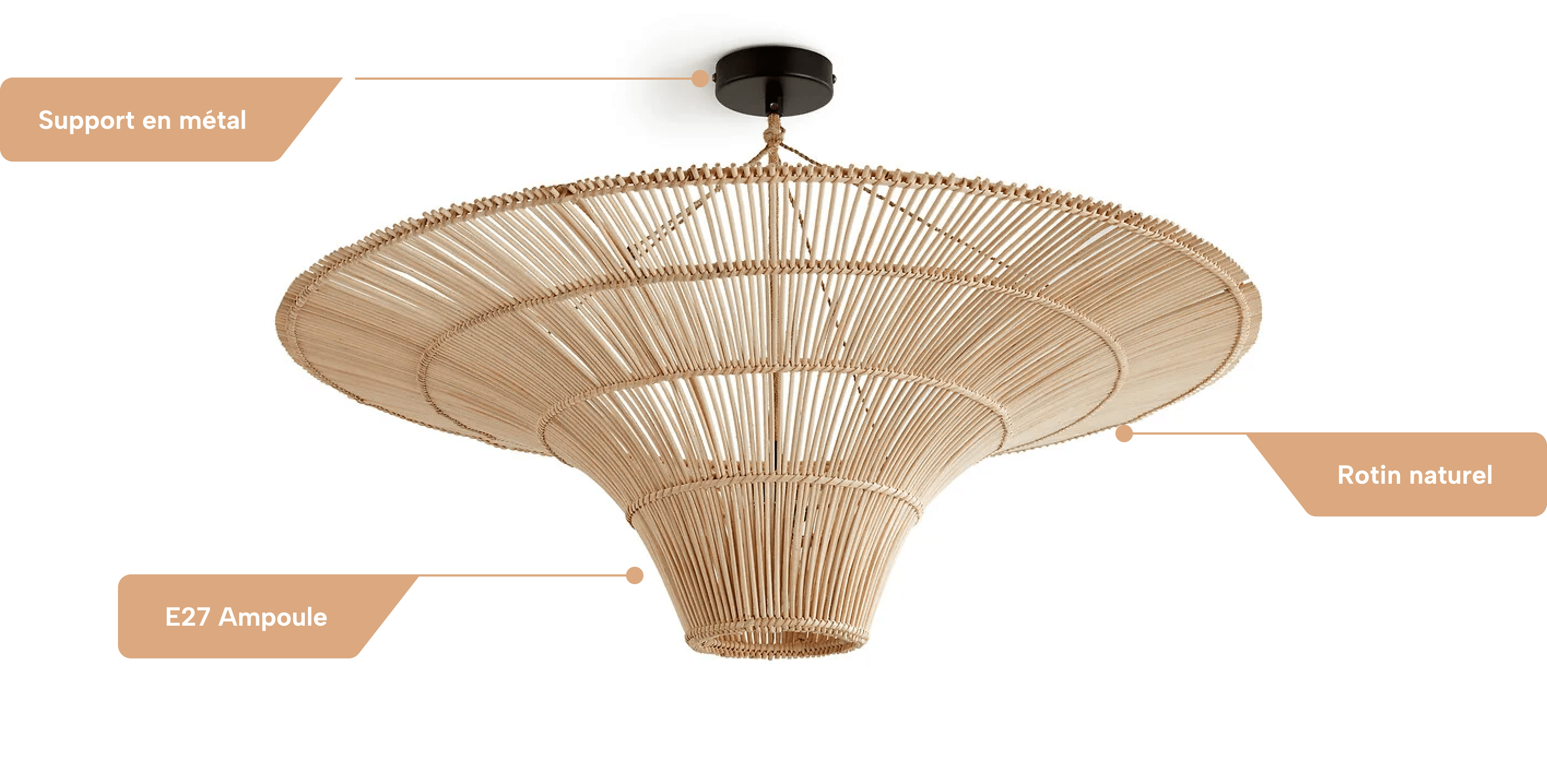Ne vous contentez plus d’une décoration qui ne vous ressemble pas. Ce plafonnier en rotin est un canvas pour exprimer votre goût pour les beaux produits et métamorphoser votre intérieur en un lieu qui porte votre empreinte unique.