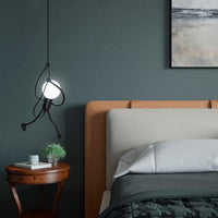 Entièrement fabriqué en métal, cette lampe suspendue minimaliste et créative peut aussi décorer un établissement commercial, ce qui suscitera la curiosité de vos clients. Vous n’avez aucun souci à vous faire quant à l’installation du petit bonhomme car la longueur du câble peut être réglée en fonction de la hauteur de votre plafond.