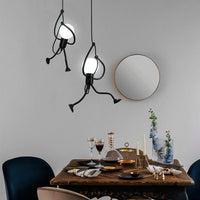 Il existe de nombreux luminaires suspendus, de différentes formes et de toutes sortes de couleurs. Mais celui-ci se distingue de par son originalité et sa finition minutieuse. En effet, cette lampe suspendue de style industriel a du caractère avec son dessin pendentif en forme de petit garçon qui descend en bas du cordon.